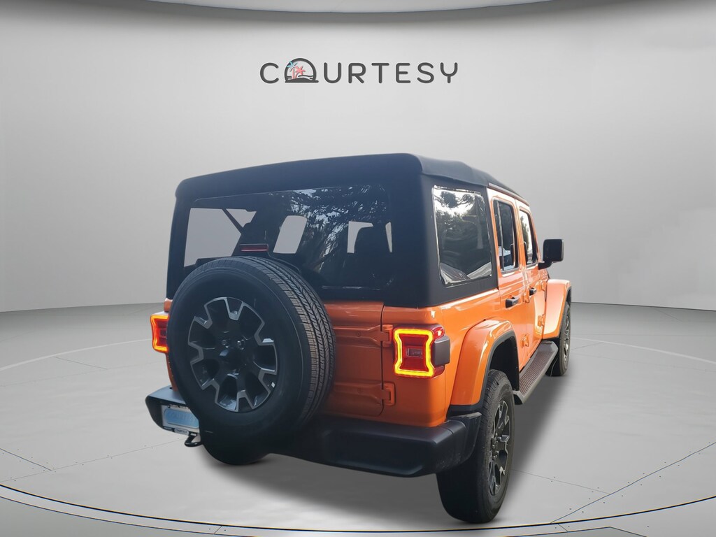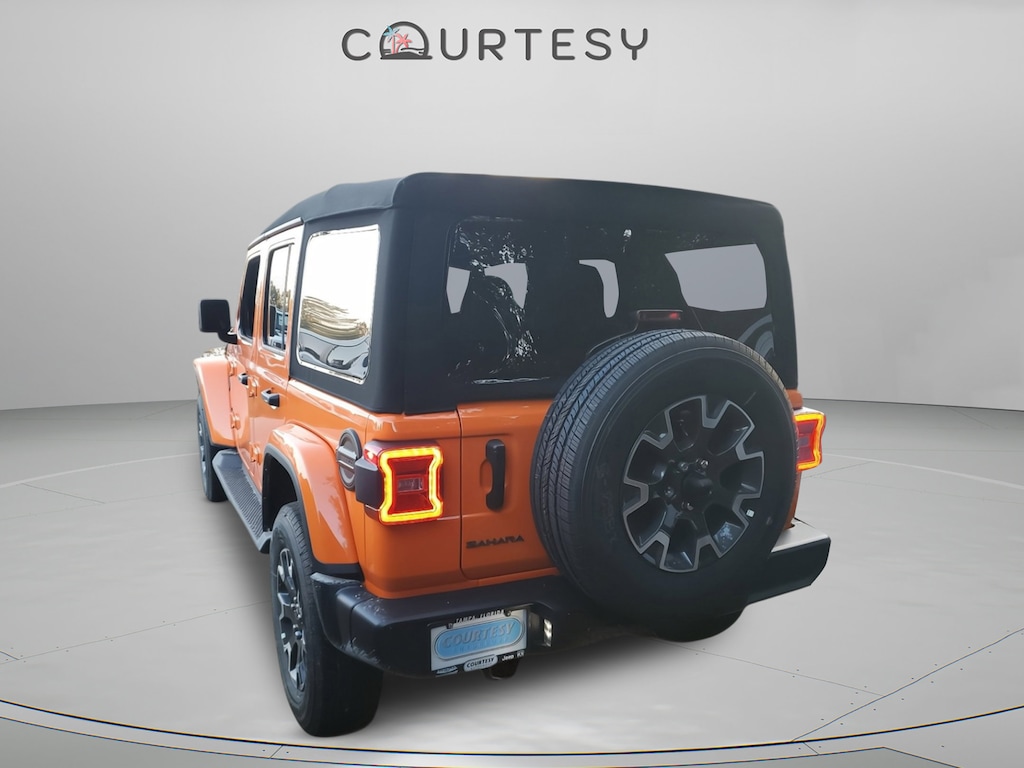 The Jeep Wrangler Sahara in Joose paint combines distinctive style with capable off-road performance and upscale features, making it ideal for those seeking adventure without compromising on comfort and technology.